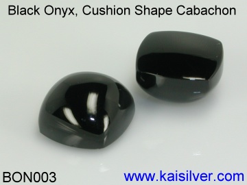 Black onyx is an opaque black gem, very popular among both ladies and gents. You will come across black onyx rings, pendants, bracelets and earrings in both gold and 925 silver. An interesting observation related to the cut of black onyx gems is that, most of them are cut with a smooth cabochon style. It is not very common to come across, conventionally faceted or checkerboard faceted black onyx gems. From the view point of a jewelry or gem buyer, which is the better choice - faceted or cabochon cut black onyx. Let us briefly try to explain the issues involved in this report, we also disclose some useful tips related to the dimensions of black onyx gemstones. To begin with, black onyx is always opaque so there is nothing like light entering the stone through the top and reflecting on inner facets. In its simplest form, cut and polished black onyx would appear as shown in the BON003 image shown on this page. A smooth well polished surface and a nice glow due to the luster when light strikes the stone. Essentially the bottom of the onyx can be flat as a pointed cut from below would not serve any major purpose. You do not want to cut a very thin black onyx gem as it would lack strength and durability. In some cases the onyx jewelry can influence how the base of the gem should be. For example, the belief that a gem has better effect when it touches the skin (on being worn), might call for a gem that is rounded at the base. Such a cut will ensure that the base of the stone touches the skin.