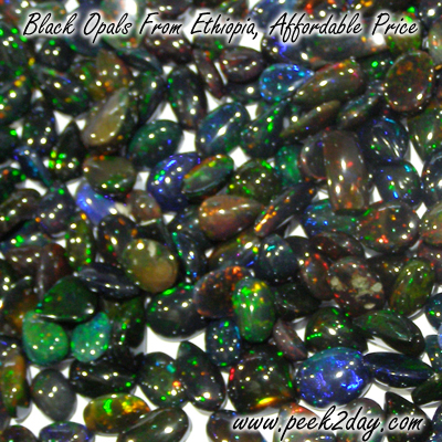The story goes that an Indian gem manufacturer in the city of Jaipur had stumbled on the right formula to turn Ethiopian white opals into these stunning black opal gemstones. The manufacturer tried to keep the formula to himself and began charging premium prices for these treated Ethiopian black opal gems. But then, you can never hide the truth - many gem dealers learnt the process to make black opal gems from natural opals from Ethiopia. As the image shows, these opal gems look stunning and appear to be of a fine quality. So how do these black opal gems from Ethiopia compare to those from the Australian mines. We would say that, any attempt to put these black opals on par or near par to those from the Lightning Ridge mines, is a waste of time. After all, the Australian gems have that dark color in their natural form but, the Ethiopian black opal gemstones are treated to give them a dark base color.